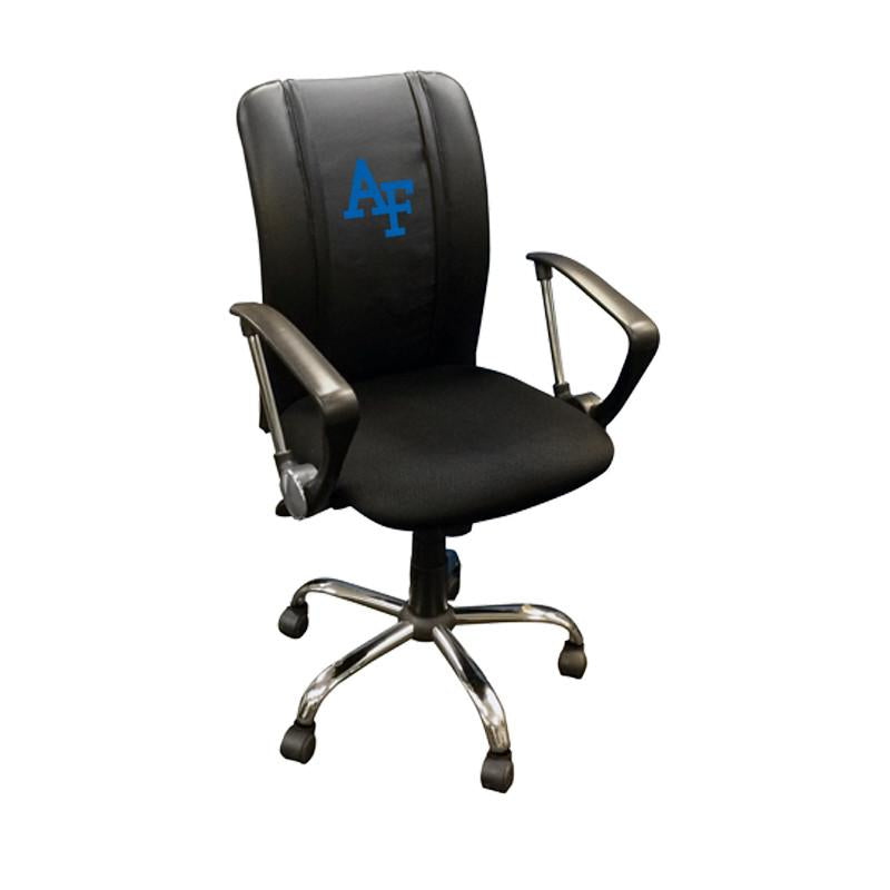 The Curve Chair is perfect for your home office or poker table. Designed with an ergonomic curved back and a commercially rated base the Curve is designed for hours upon hours of comfortable and maintenance free use. The patented XZipit system provides endless logo options on the front of the chair and allows you to showcase your favorite team or interest. Click Here To View All Air Force Academy Logo Furniture